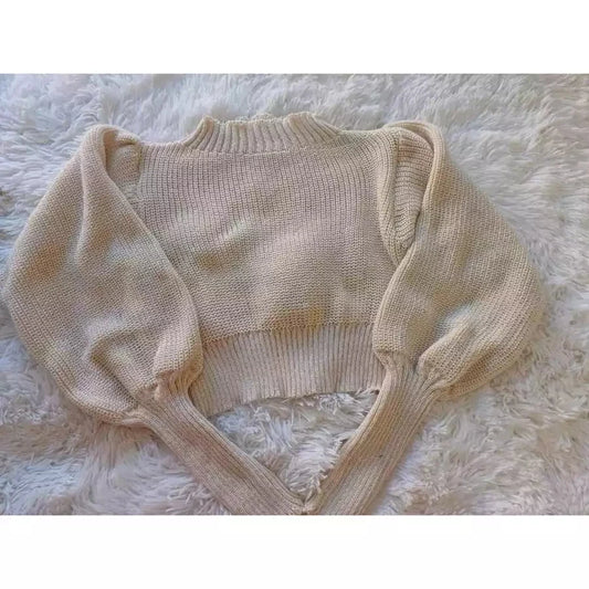 Economize 14%Cropped Manga Bufante Tricô Tricot Blusa de Frio Inverno