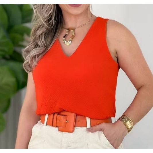 Economize 10%Blusa Regata Feminina Alça Larga Tecido Duna