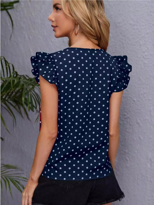 Blusa Feminina Elegante de Bolinhas com Babado Plissado e Botões