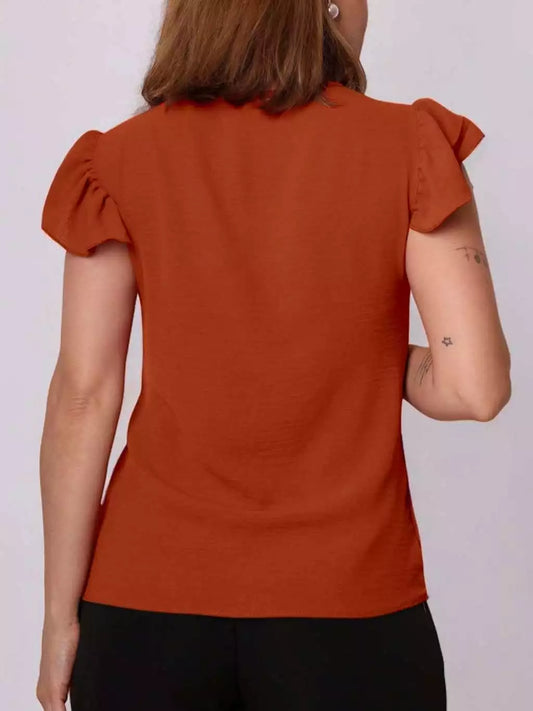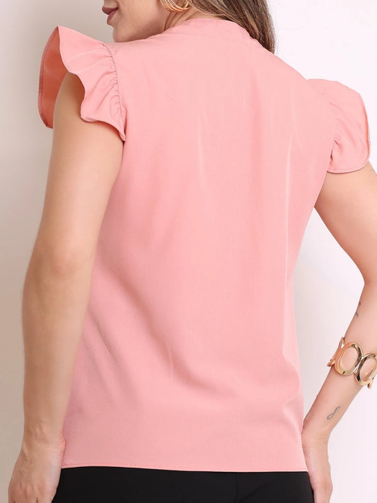 Economize 27%Blusa Feminina Top Manga Curta com Babado em Tecido Duna