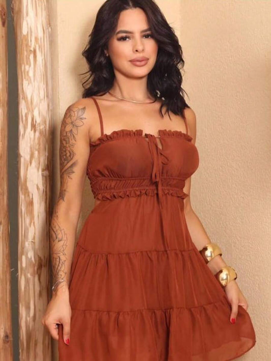 Economize 16%Vestido Feminino Curto Boho com Babado