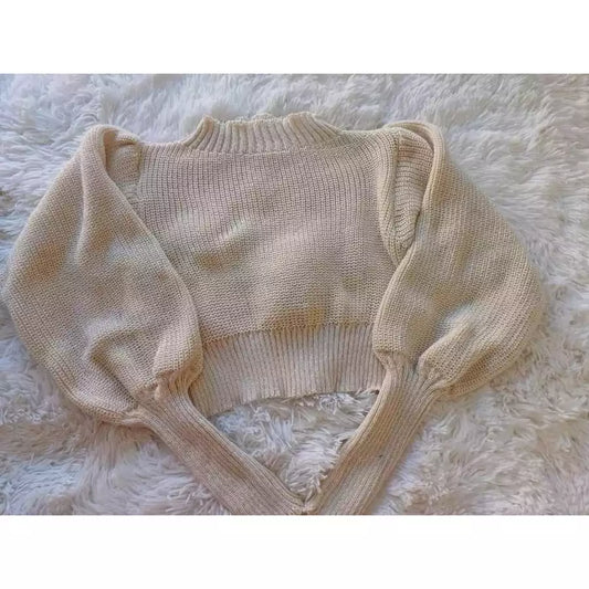 Cropped Manga Bufante Tricô Tricot Blusa de Frio Inverno