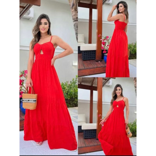 Economize 10%Vestido Longo Bojo Feminino Alça Regulável Linha Premium