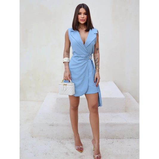 Macaquinho Blazer Feminino em Alfaiataria com Short Interno e Cinto Ajustável