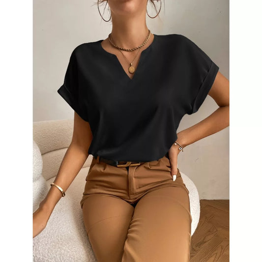 Blusa Feminina Popover com Pescoço Entalhado e Manga Morcego