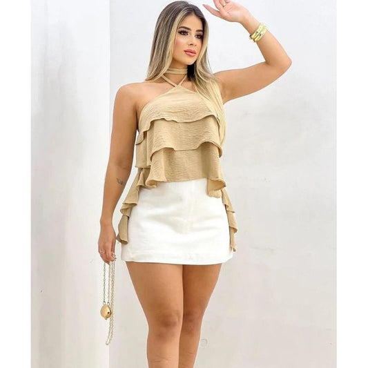 Economize 10%Blusa Feminina Bata de Verão com 3 Babados Luxuosa