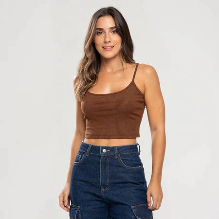 Economize 29%Blusa Feminina Alcinha Cropped Canelado