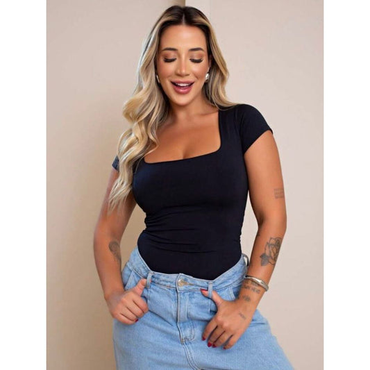 Economize 16%Blusa Básica Feminina Baby Look Decote Quadrado Casual