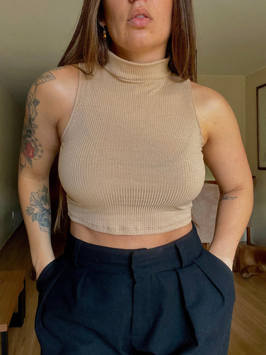 Economize 13%Cropped Canelado Gola Alta