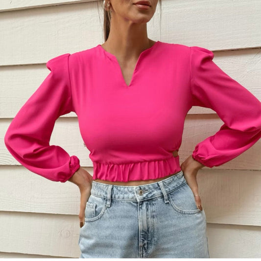 Economize 20%Cropped Feminina Casual Elegante Manga Longa Bufante