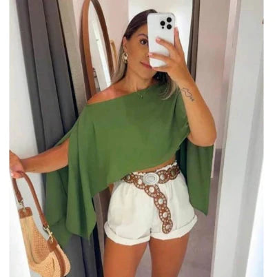Economize 11%Cropped Capa Ampla Ombro Caído Boho
