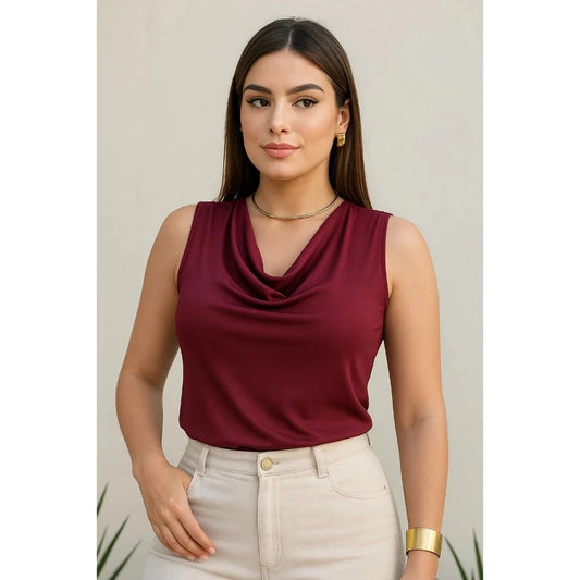 Economize 16%Blusa Feminina Social Regata Gola Alta