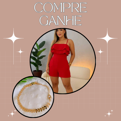 Na compra do Macaquinho Feminino Priscila, você ganha um Colar Curto Feminino Camada Dupla banhado a Ouro 18K e Prata 925.