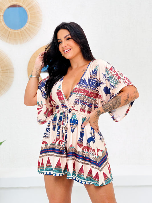 Economize 14%Macaquinho Feminino Estampado com Alcinha e Bolsos