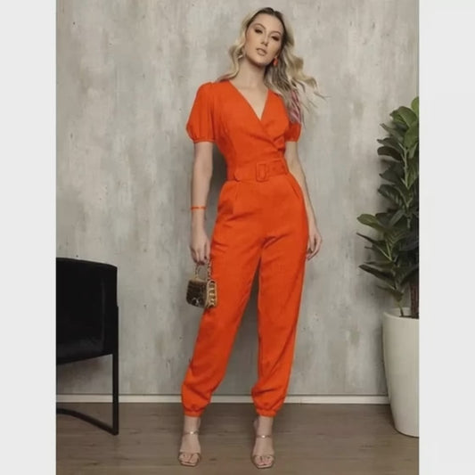 Macacão Feminino com Cinto e Manga Bufante – Elegância e Estilo