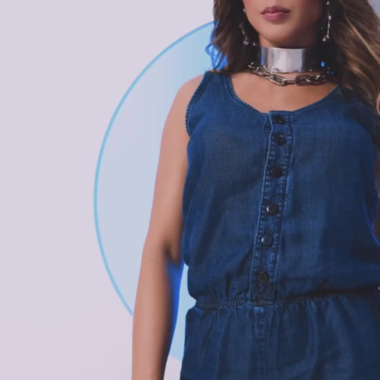 Macaquinho Soltinho Feminino Regata em Jeans Tencel com Botões – Conforto e Estilo