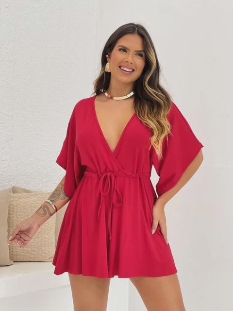 Macaquinho Feminino Soltinho em Alfaiataria Duna com Cinto e Decote em V – Elegância e Conforto