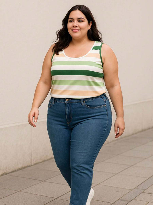 Economize 21%Blusa Regata Feminina Plus Size Listrada