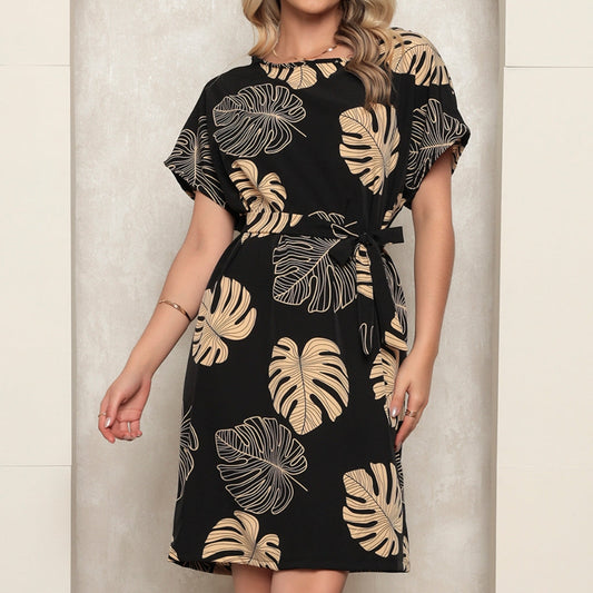 Vestido Elegante Longo Feminino Estampado com Manga Curta