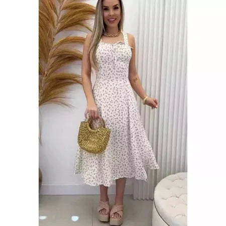 Economize 15%Vestido Mídi Romântico Estampado em Elastex
