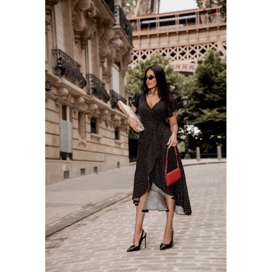 Vestido envelope marca a cintura Manga curta Babado Na Barra