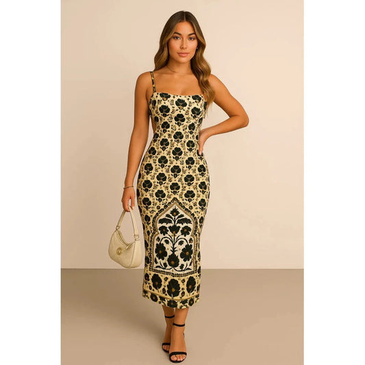 Vestido Feminino Midi Tubinho Estampado Inspiração Farm - Tendência Verão