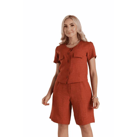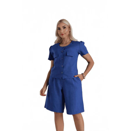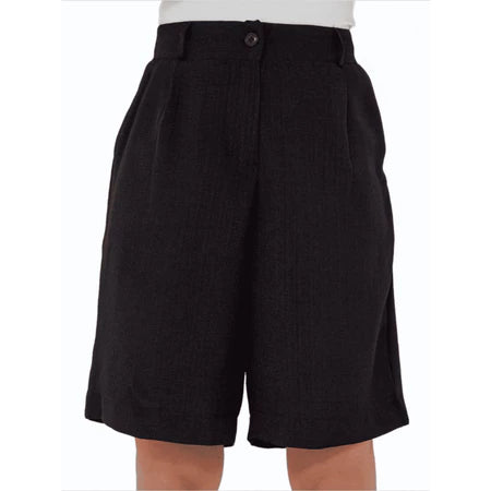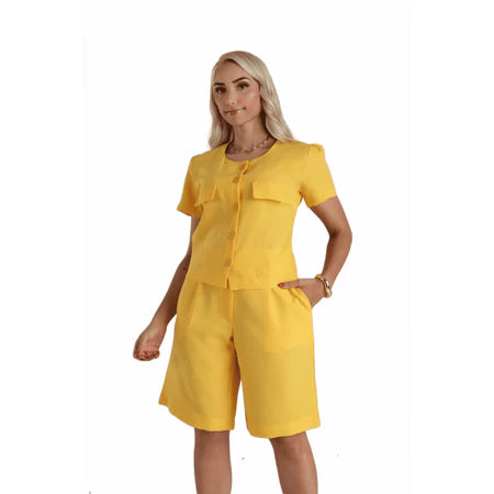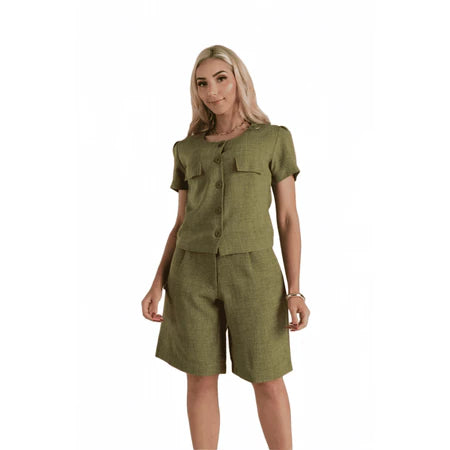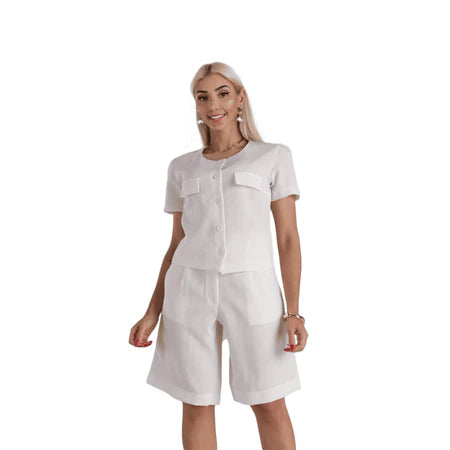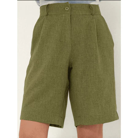 Bermuda Feminina em Linho Rústico com Fechamento Frontal