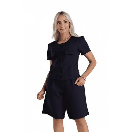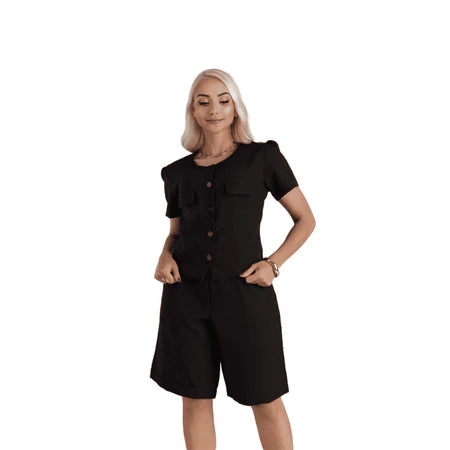 Para um visual casual sofisticado, combine com blusa de tecido leve ou camisa em tricoline. Já para um look moderno, aposte em cropped estruturado e sandália de tiras. Perfeita para quem aprecia peças práticas e elegantes.