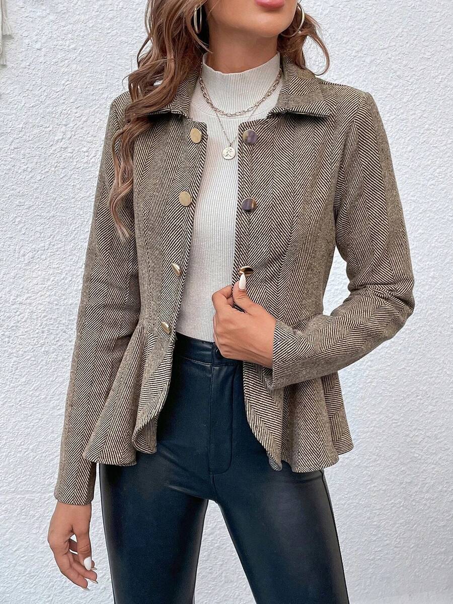 Blazer Feminino Curto de Alfaiataria Carol com Babado e Botões Duplos