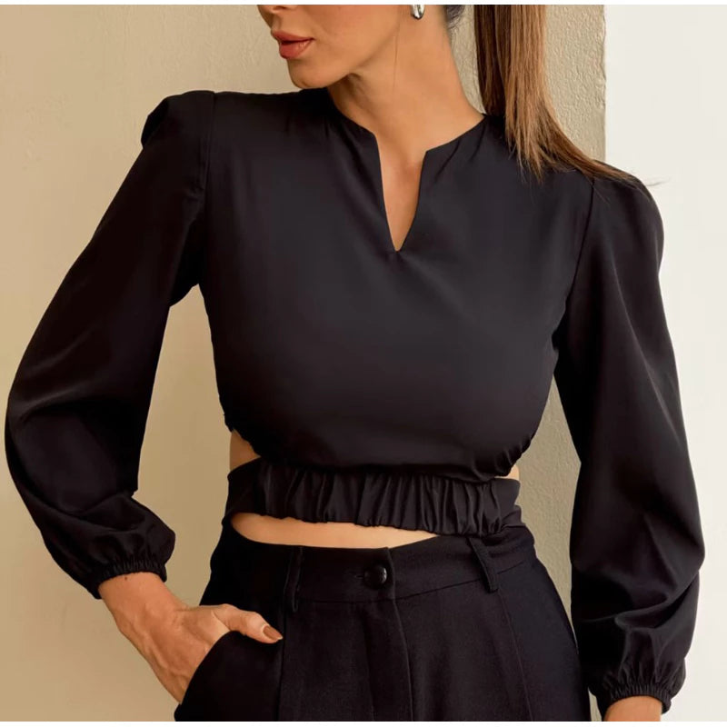 Cropped Feminina Casual Elegante Manga Longa Bufante