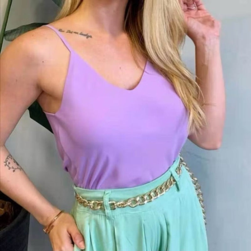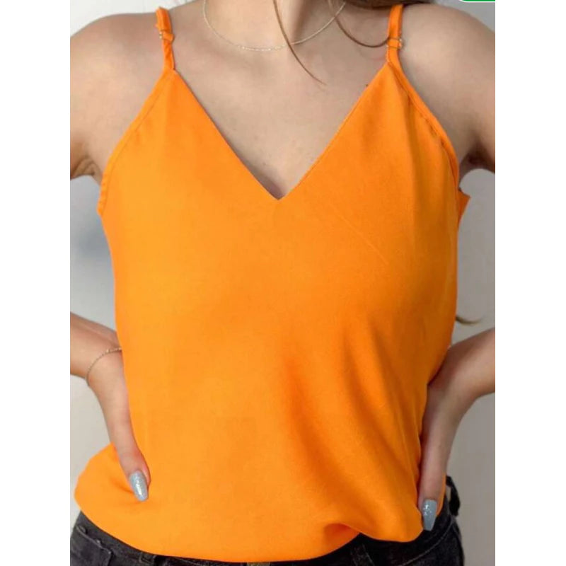 Blusa Feminina Regata com Alça Regulável Gola V – Básica, Confortável e Elegante