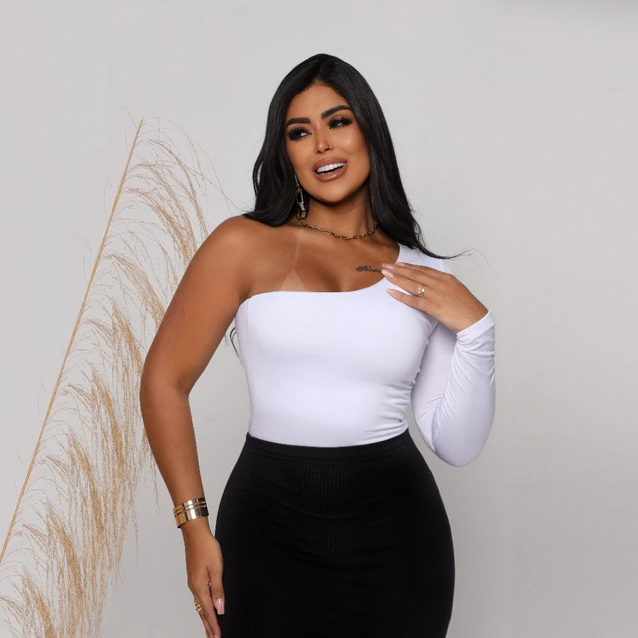 O Body Feminino Mula Manca é a peça perfeita para quem busca unir estilo moderno e conforto no dia a dia. Com modelagem assimétrica e manga longa, ele traz um visual atual e elegante, ideal para diferentes ocasiões – do casual ao sofisticado.