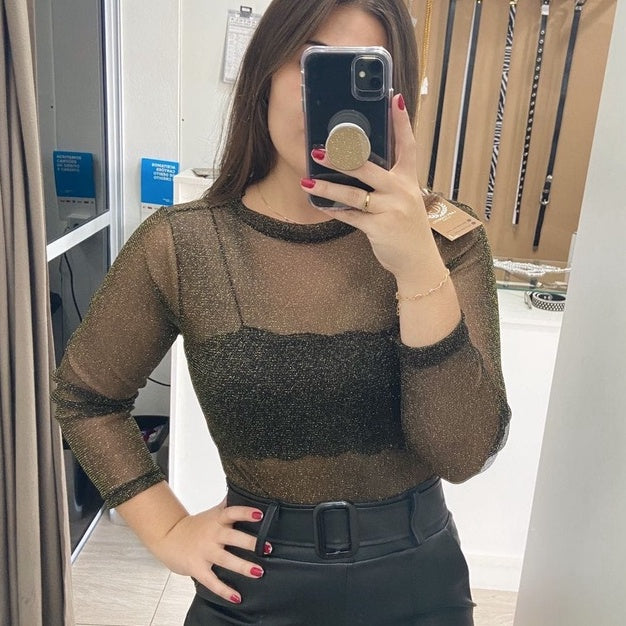- Versátil: Pode ser usado com lingerie, tops ou regatas