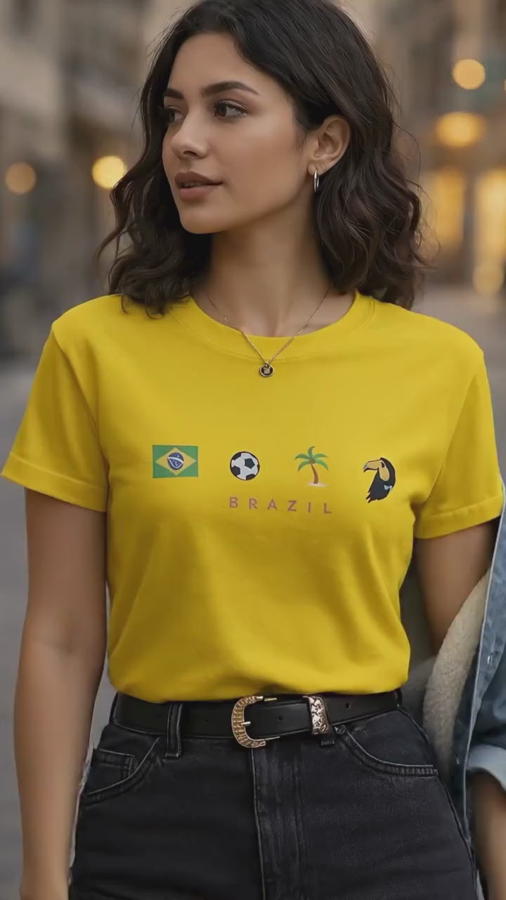 - ✨ Design Minimalista: Estampa clean com símbolos cuidadosamente selecionados (Bandeira, Bola, Coqueiro e Tucano).