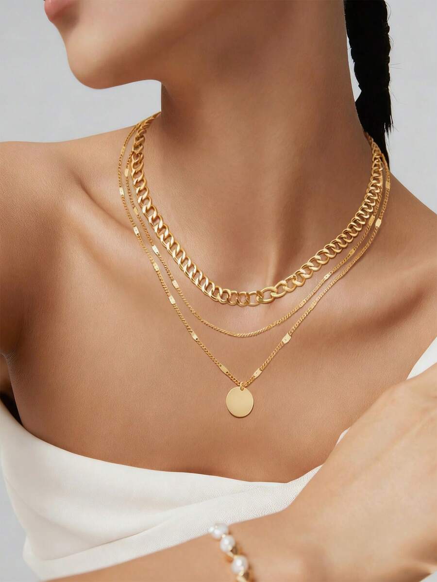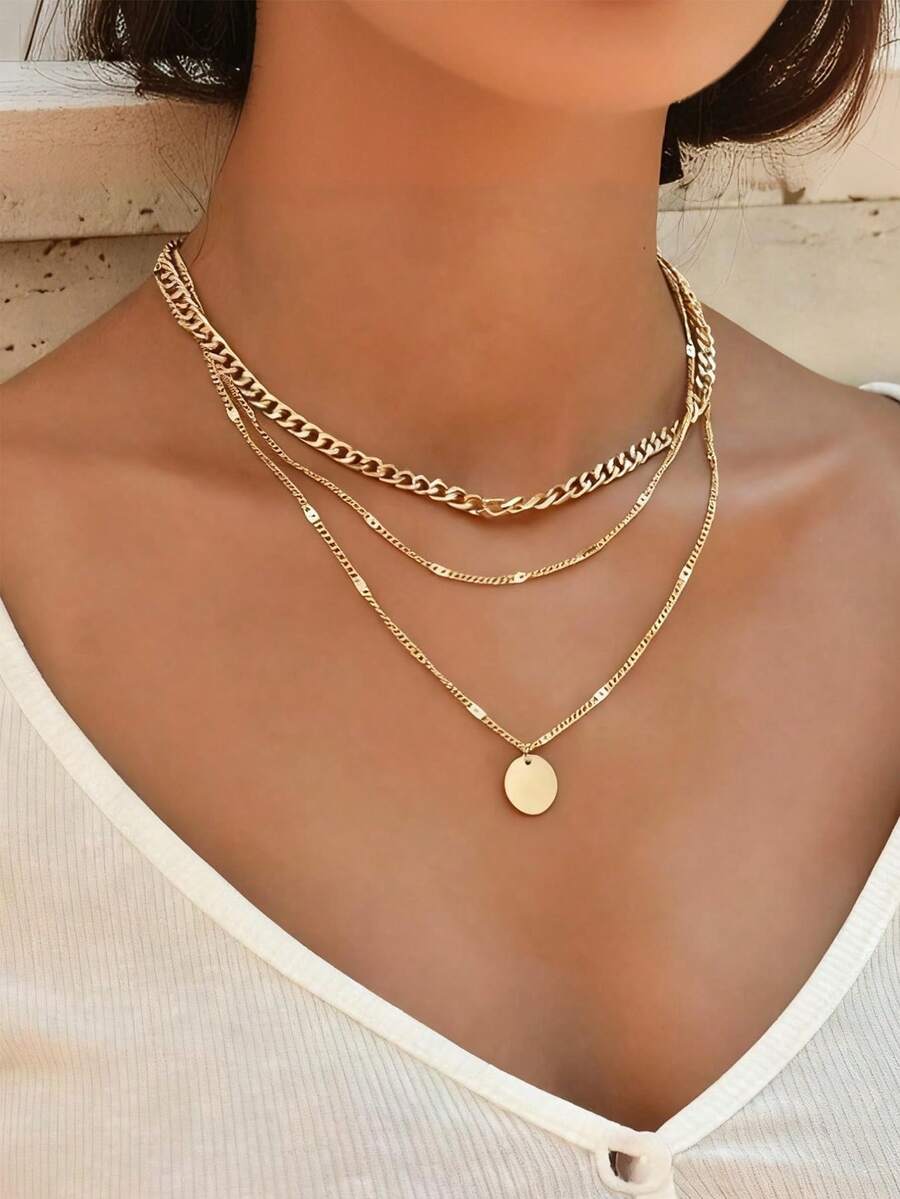 O Colar Feminino Europeu de Múltiplas Camadas é a escolha perfeita para mulheres que desejam um acessório moderno, elegante e versátil. Com pingentes redondos e detalhes geométricos, este colar de corrente para clavícula combina sofisticação e estilo casual, sendo ideal para festas, feriados ou uso diário. Seu acabamento dourado adiciona brilho e charme ao visual.