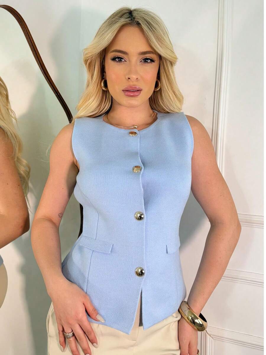 Colete Feminino de Alfaiataria em Modal com Botões Frontais