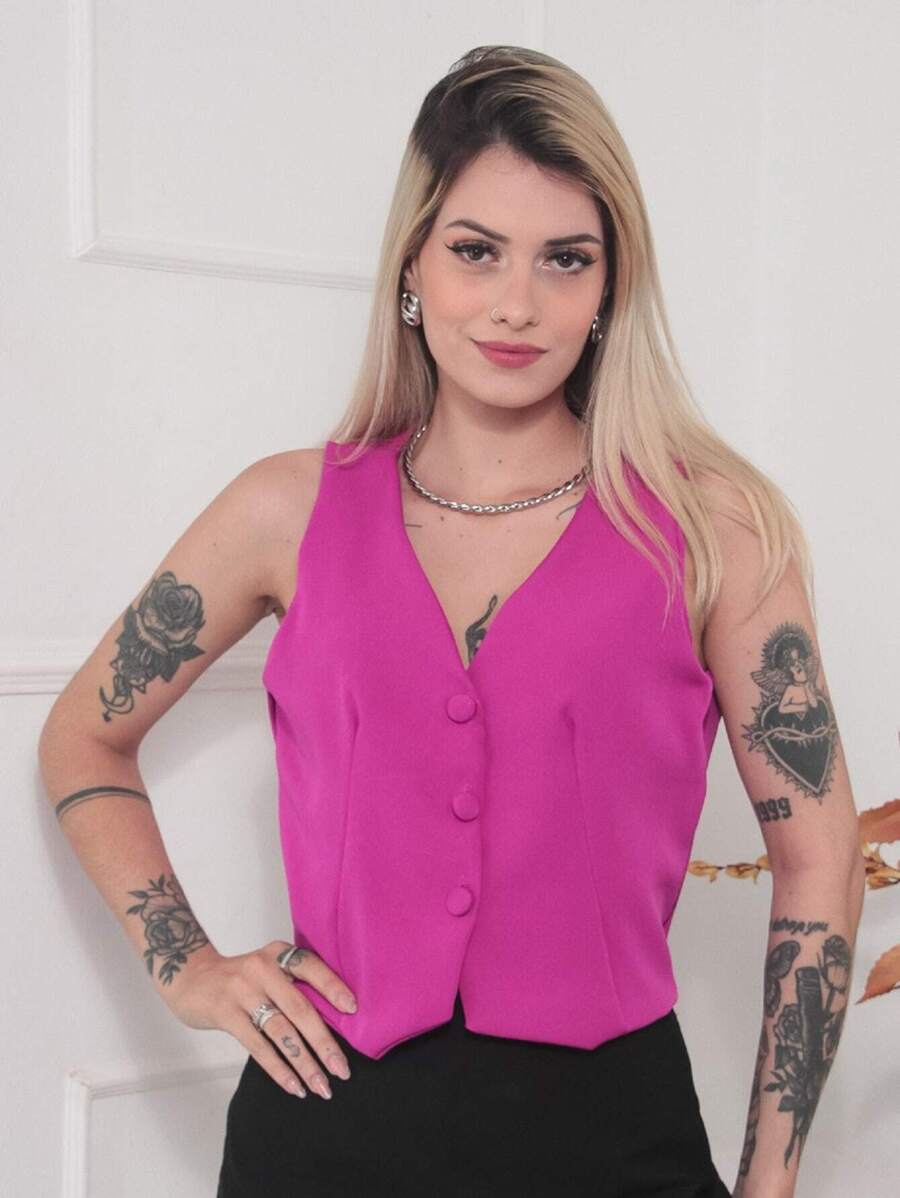 Invista no Colete Feminino de Alfaiataria Social com 3 Botões Encapados e tenha uma peça atemporal que une conforto, sofisticação e versatilidade para diversas ocasiões.