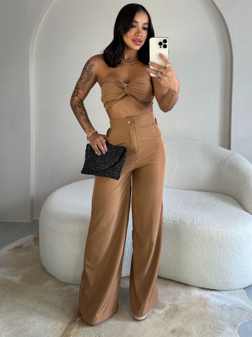 O Conjunto de Crepe Seda Vazado nas Laterais é a peça que você precisa para exalar elegância e sofisticação em qualquer ocasião. Com detalhes vazados nas laterais do cós e um caimento fluido, este conjunto une sensualidade e conforto de maneira única. Suas costas abertas adicionam um toque de ousadia, tornando-o ideal para eventos tanto diurnos quanto noturnos.