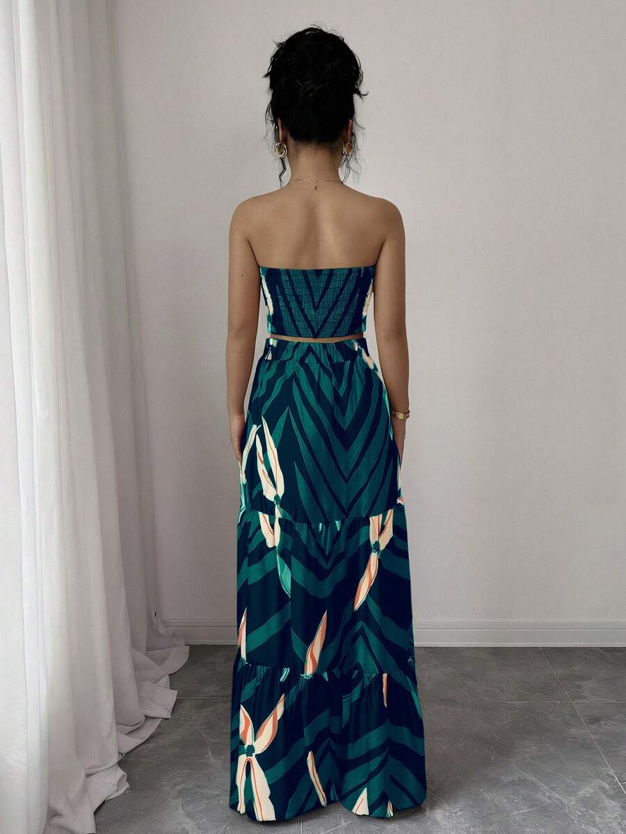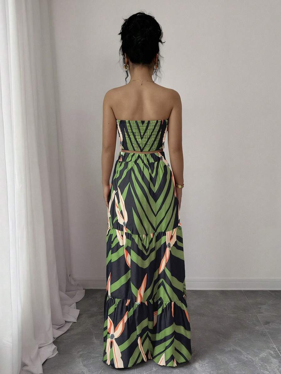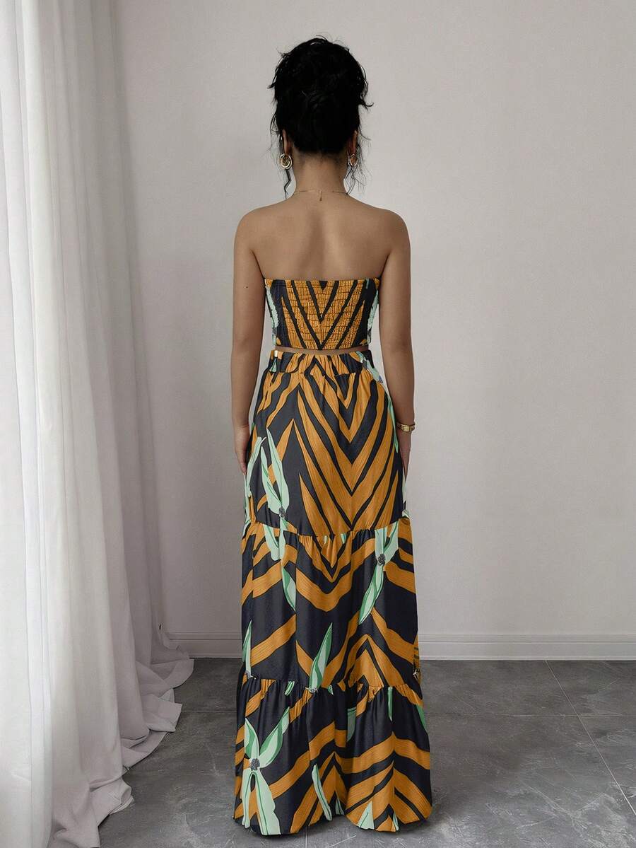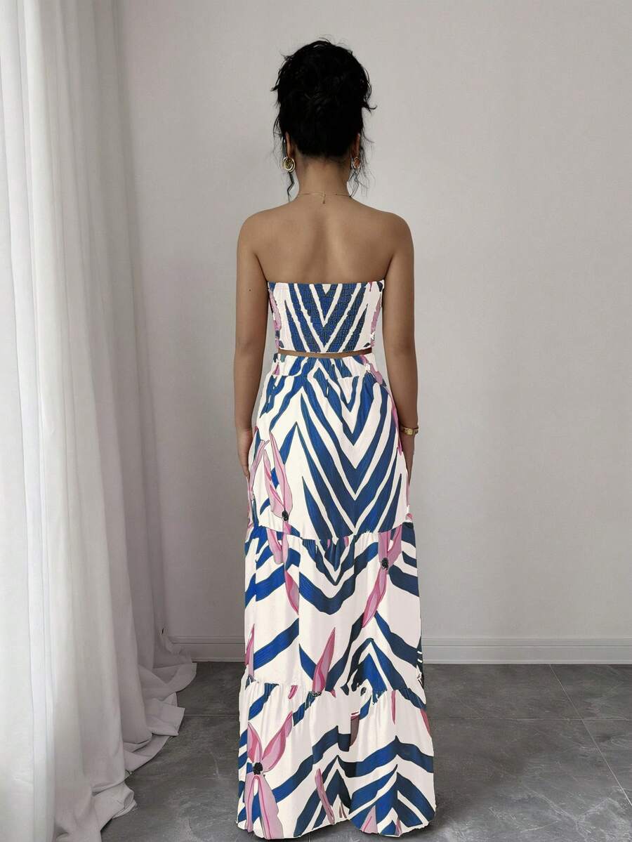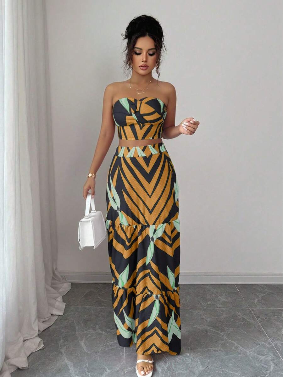 Conjunto Feminino 2 Peças com Cropped e Saia Longa – Estampa Boho e Modelagem Solta