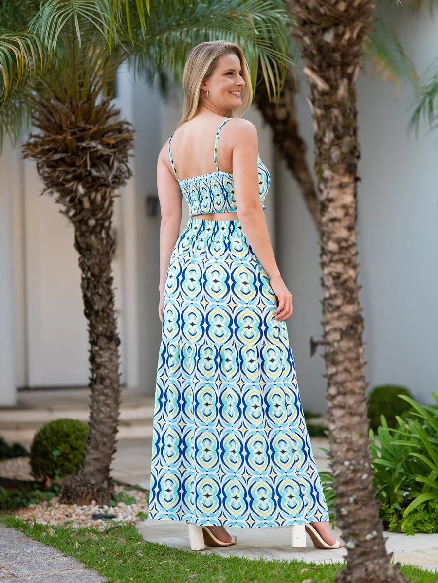 Conjunto Feminino Blusinha e Saia Longa Estampado com Bojo