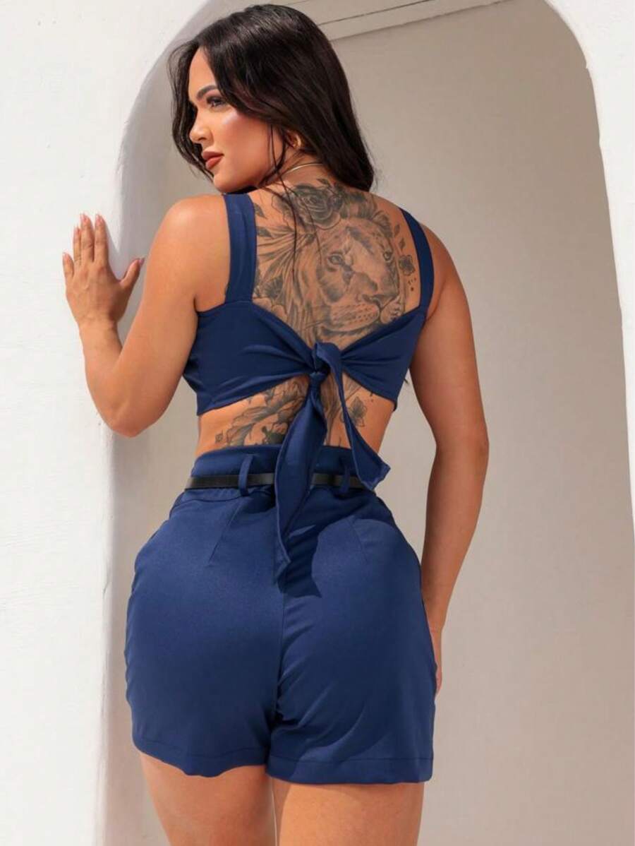 Conjunto Feminino Short e Cropped em Alfaiataria