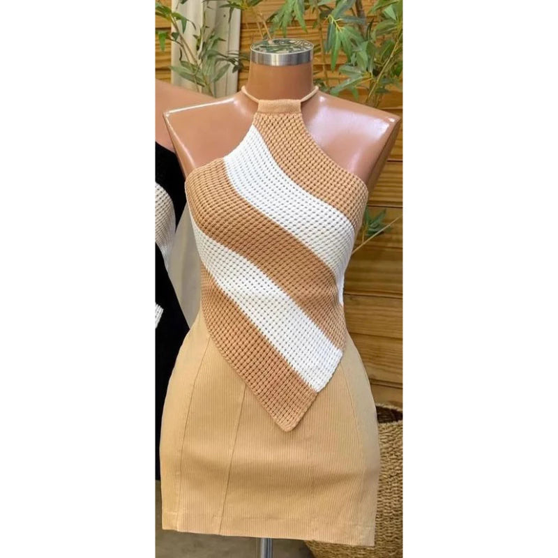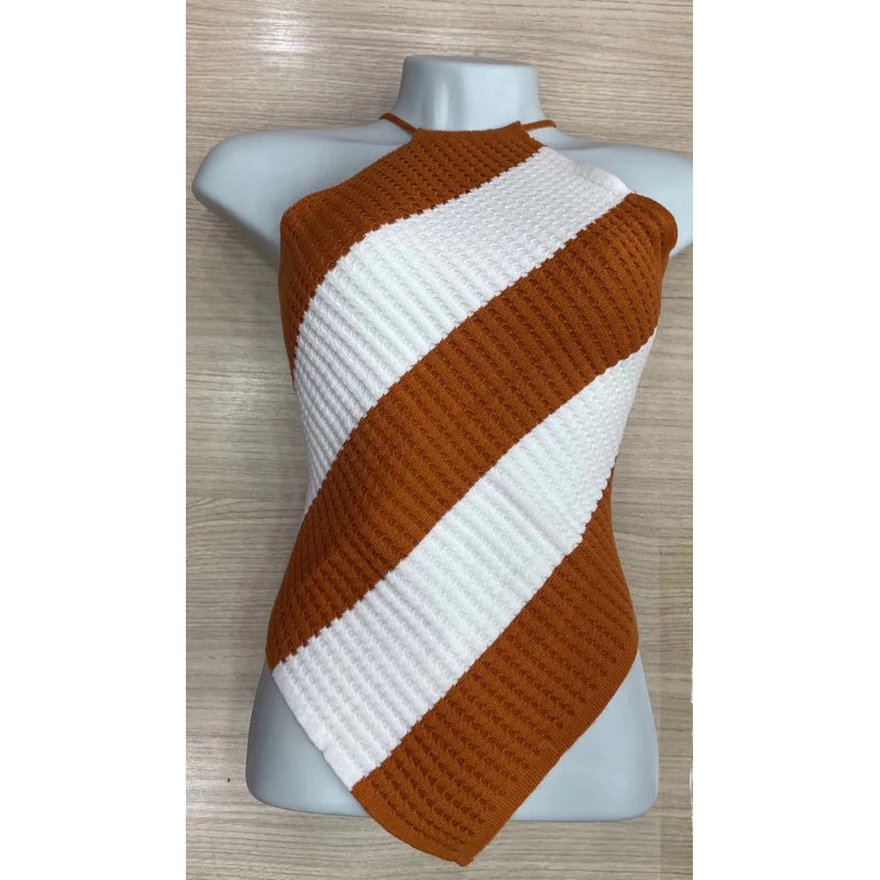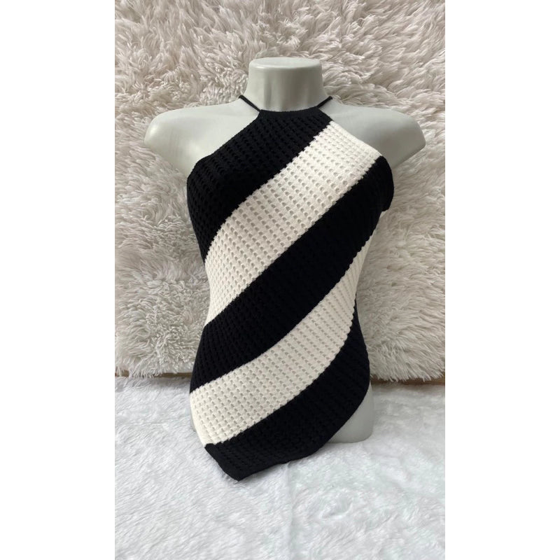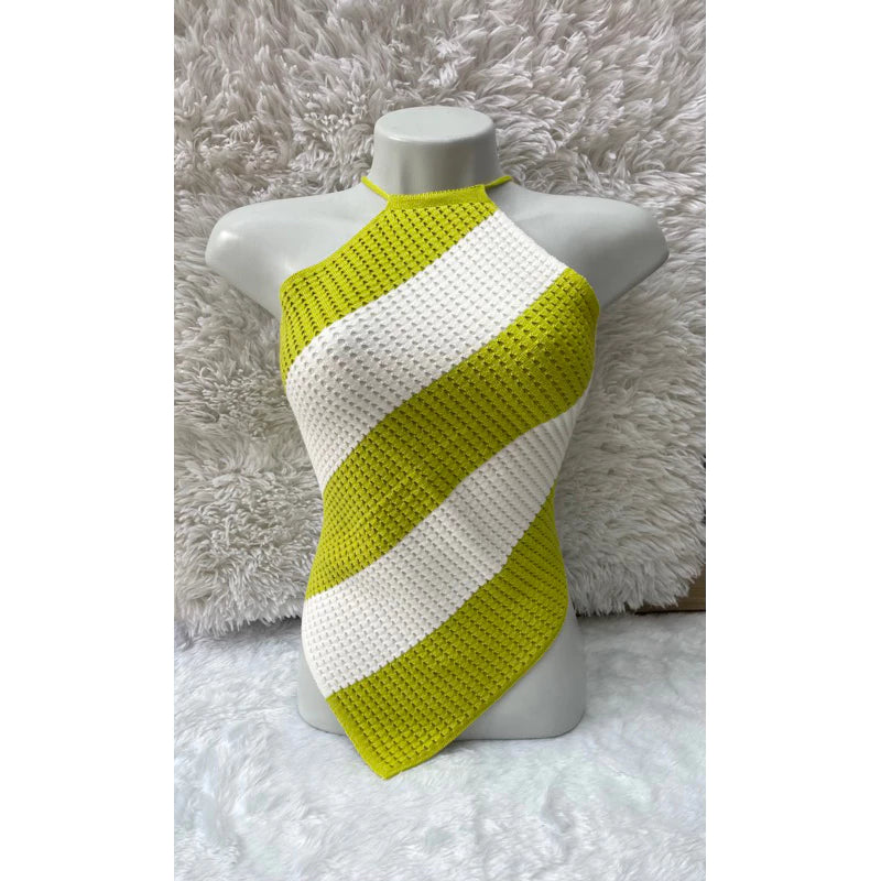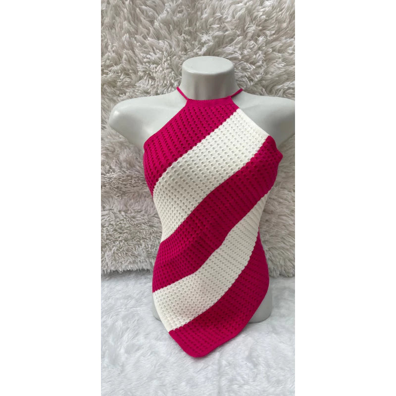 Cropped tricô modal frente Único listrado de bico com amarração nas costas