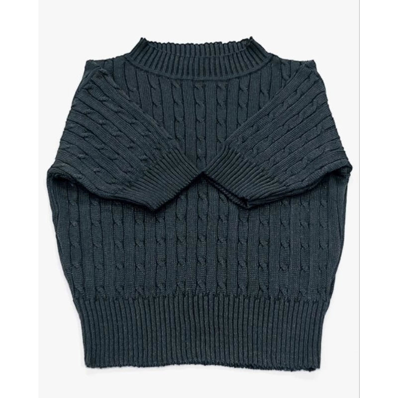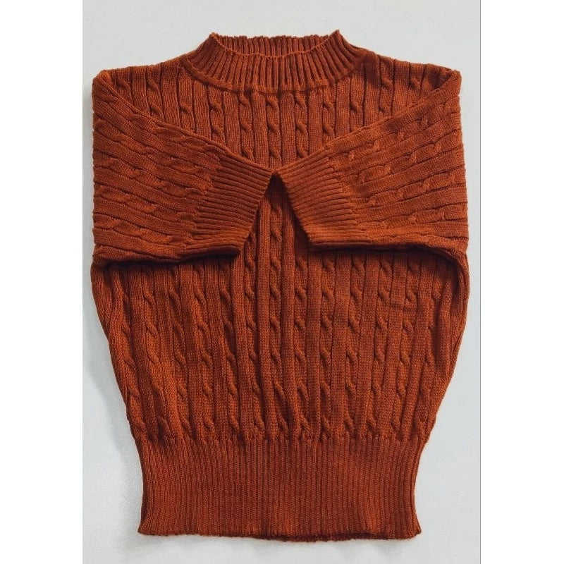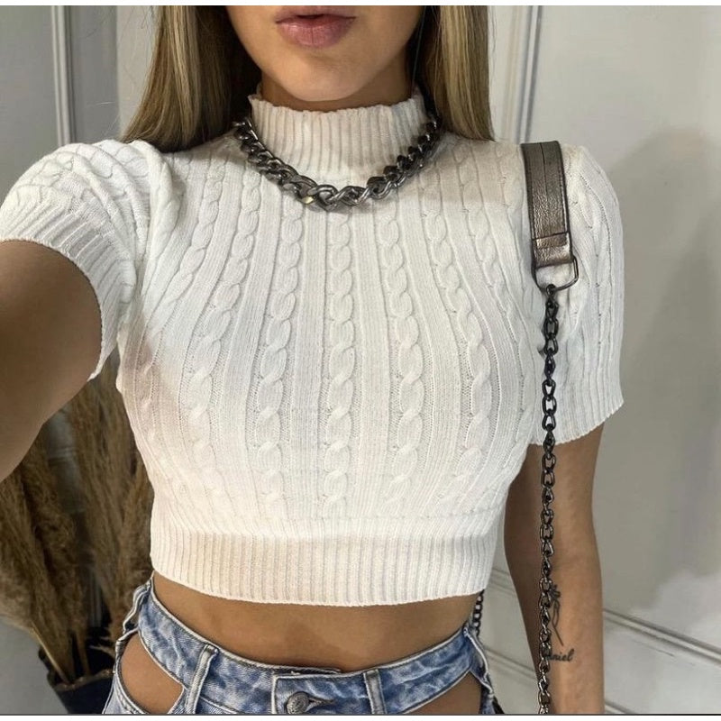Cropped Tricô com Trança e Manga Curta