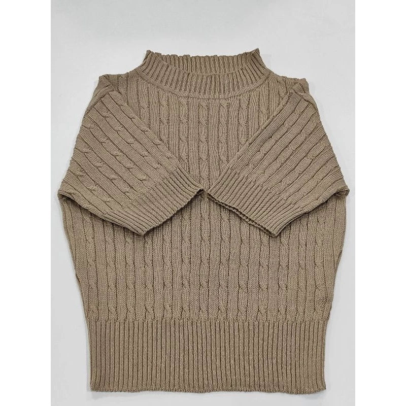Cropped Tricô, Trança Manga Curta