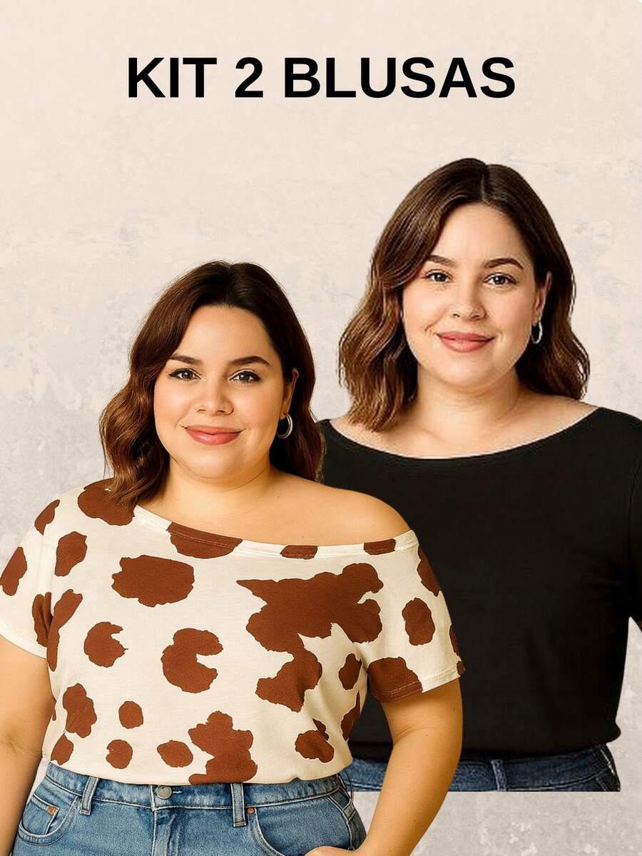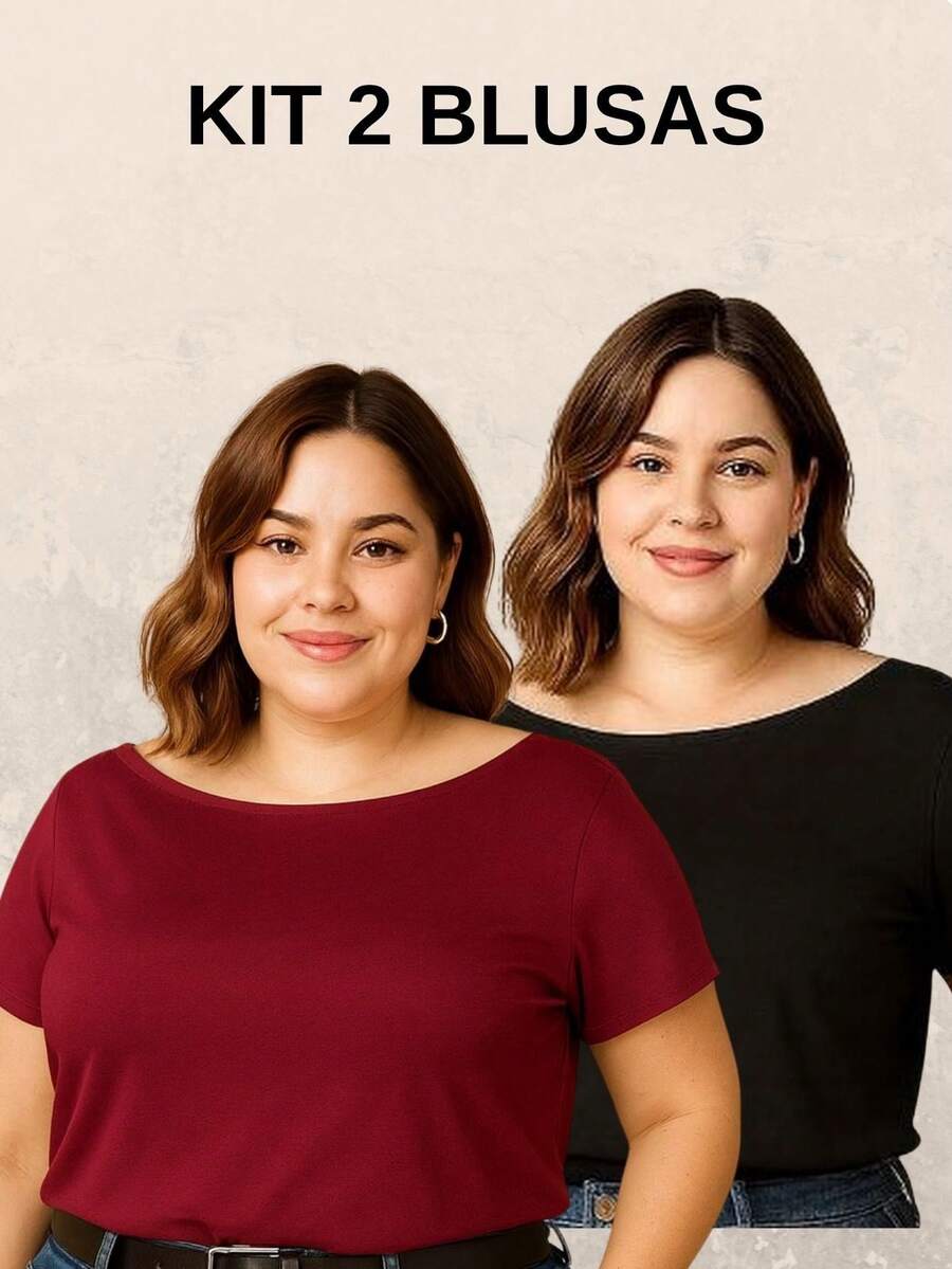 Kit 2 Blusas Femininas Plus Size Manga Curta – Conforto, Versatilidade e Caimento Perfeito