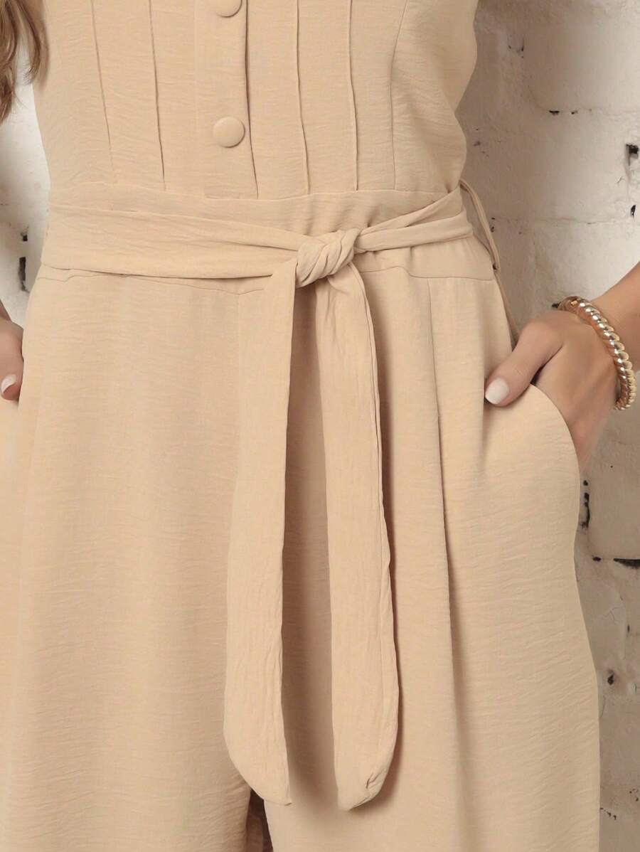 Macacão Feminino Longo com Botões Frontais e Amarração na Cintura