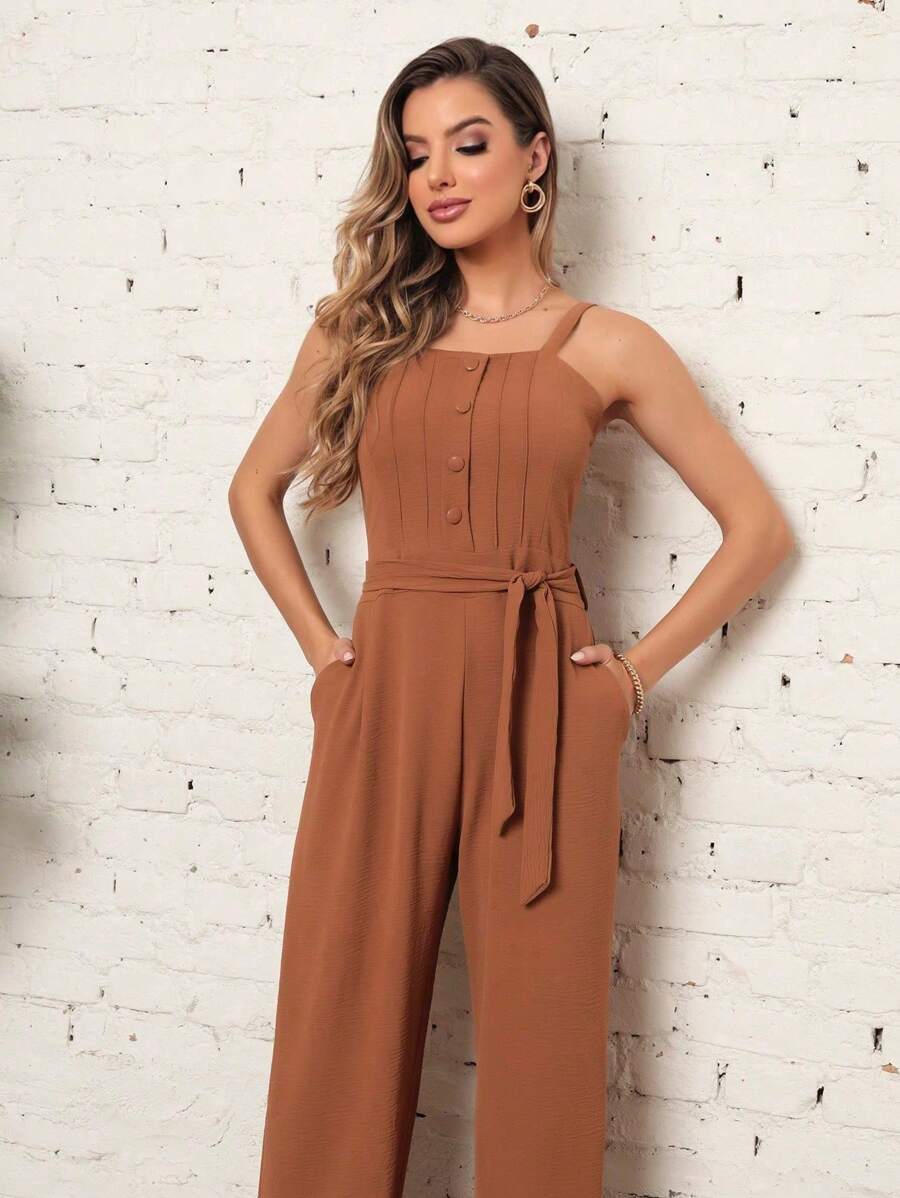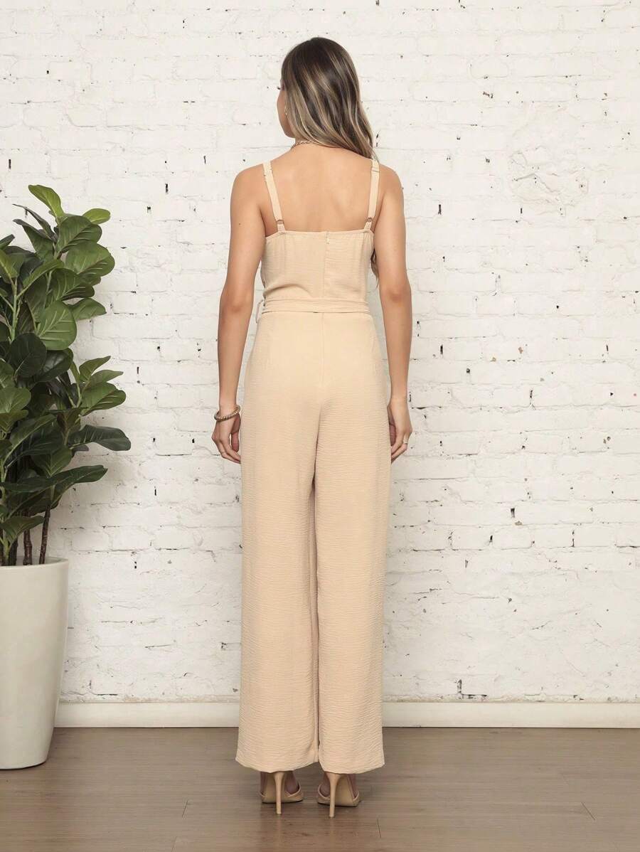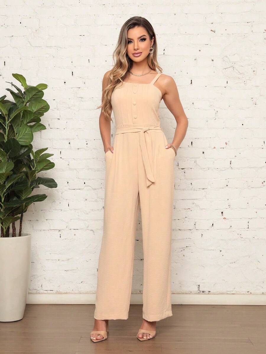 macacão feminino longo, macacão com botões, macacão com amarração na cintura, macacão tecido duna, macacão elegante, moda feminina, macacão social, macacão sofisticado, roupa feminina moderna