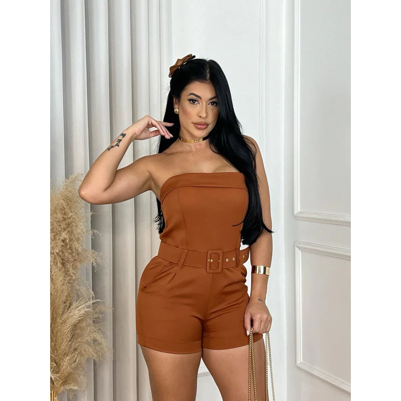 Macaquinho Feminino Alfaiataria Curto com Cinto – Moda Social Elegante