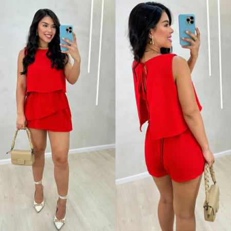 Macaquinho Feminino Soltinho em Duna com Babados em Camadas e Amarração nas Costas – Leveza e Charme para o Verão