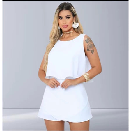 O Macaquinho Feminino Soltinho é a escolha perfeita para os dias quentes de verão, festas de fim de ano, Natal e Réveillon. Confeccionado em tecido duna premium, ele combina conforto, frescor e um caimento impecável, valorizando o corpo com suavidade. Seu design moderno com camadas e babados traz movimento e leveza, criando um visual romântico e sofisticado.